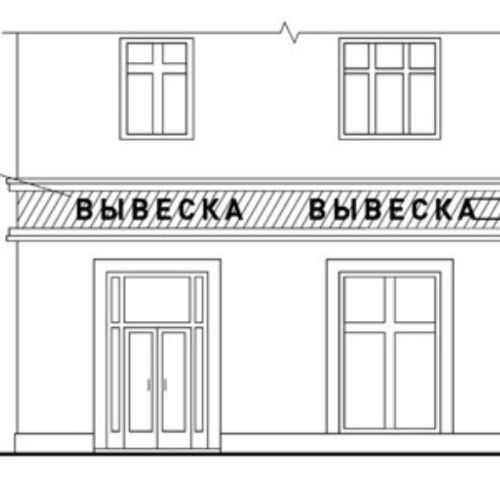 Размещение на фотографии макета вывески в размеры, для утверждения